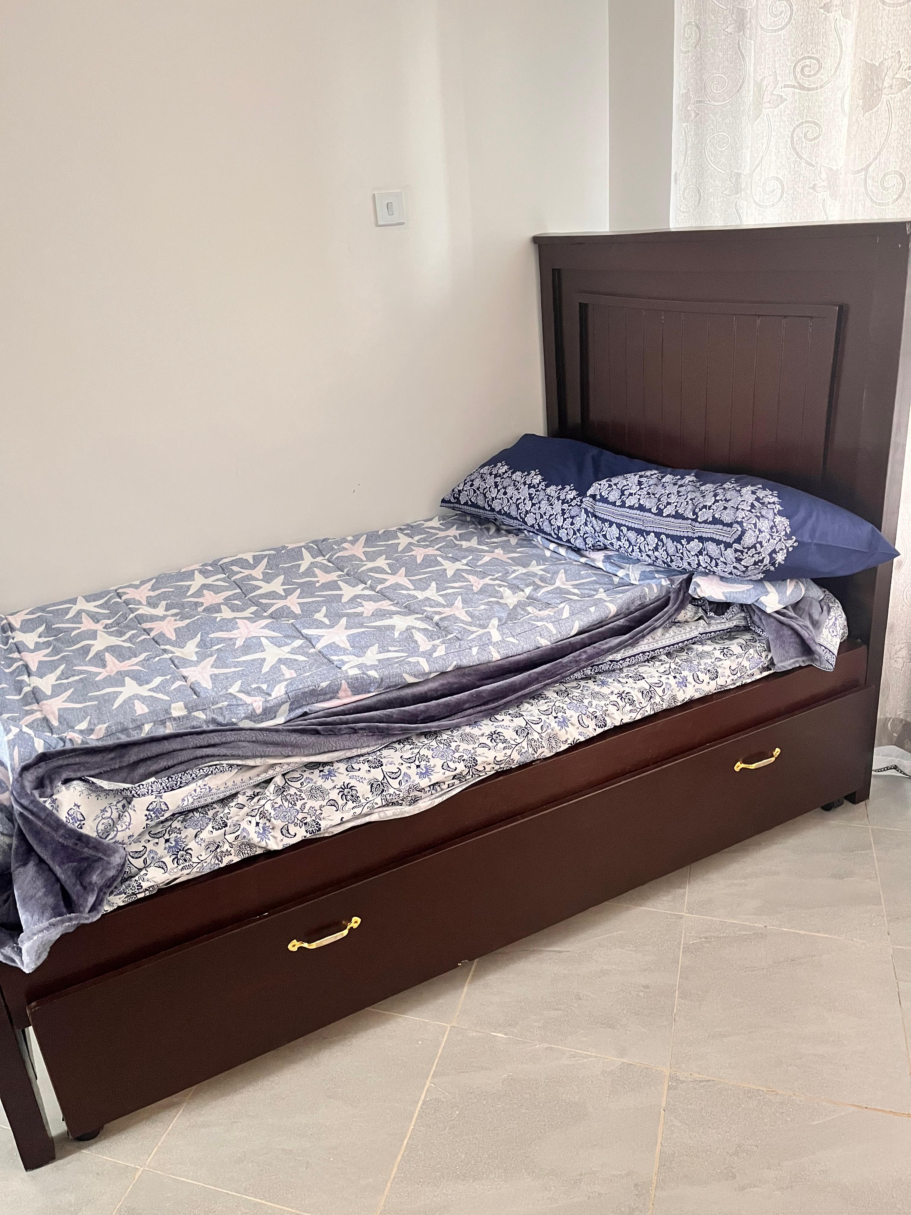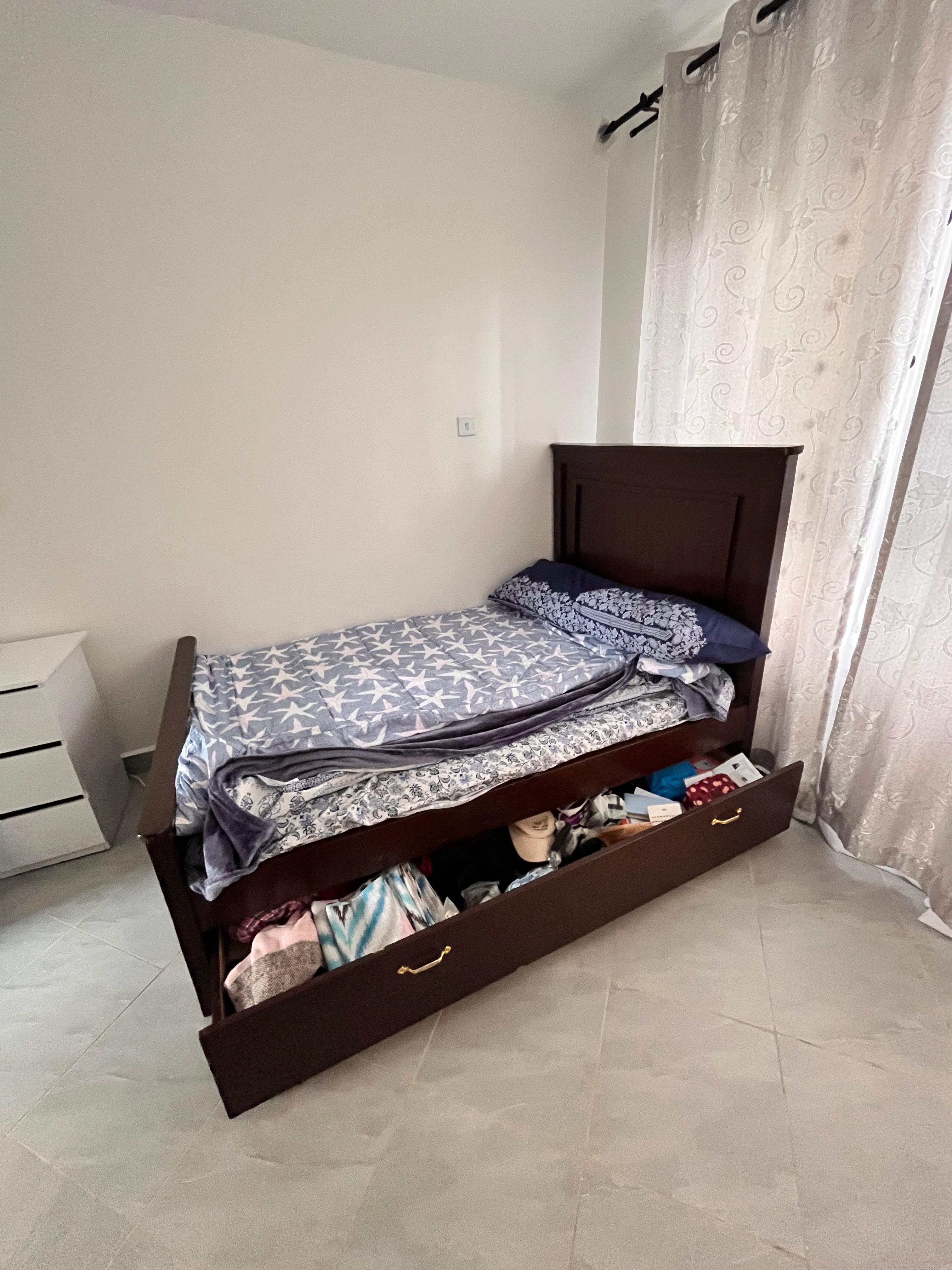 Desciption: 4x6 Wooden Bed with Under-Drawer Storage - Gently Used (1 month)